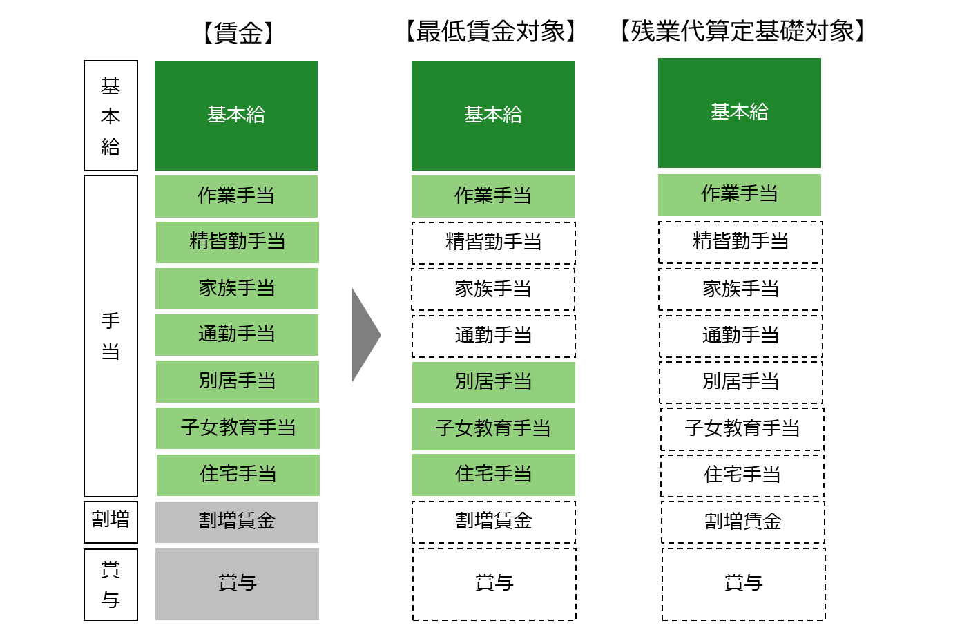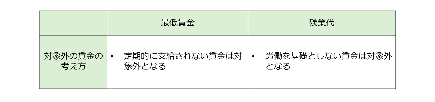 (3) 最低賃金の対象と残業代の算定基礎の対象について