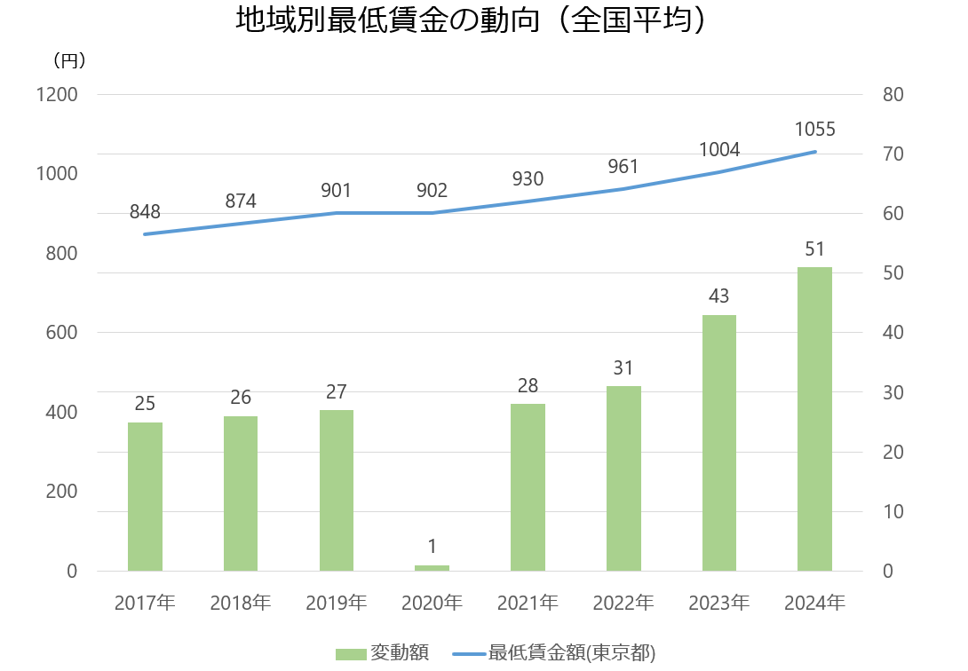 2024年10月、全国平均で地域別最低賃金が51円引き上げられました。この場合の中小企業への影響を見てみましょう。