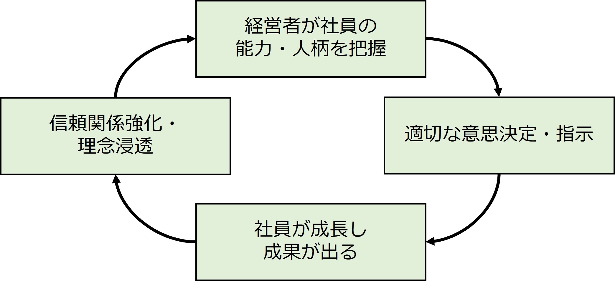 (社員数100人-230人の場合は、上図のような好循環が生まれる。組織がそれ以上の規模になる場合には、労働組合などの仕組みが必要)