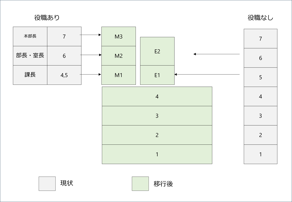 現制度から新制度に移行することで、等級や処遇が変わることがあります。新しい等級定義や評価シートに照らして仮格付けを行ったり、テストなどの方法で仮格付けを行います。