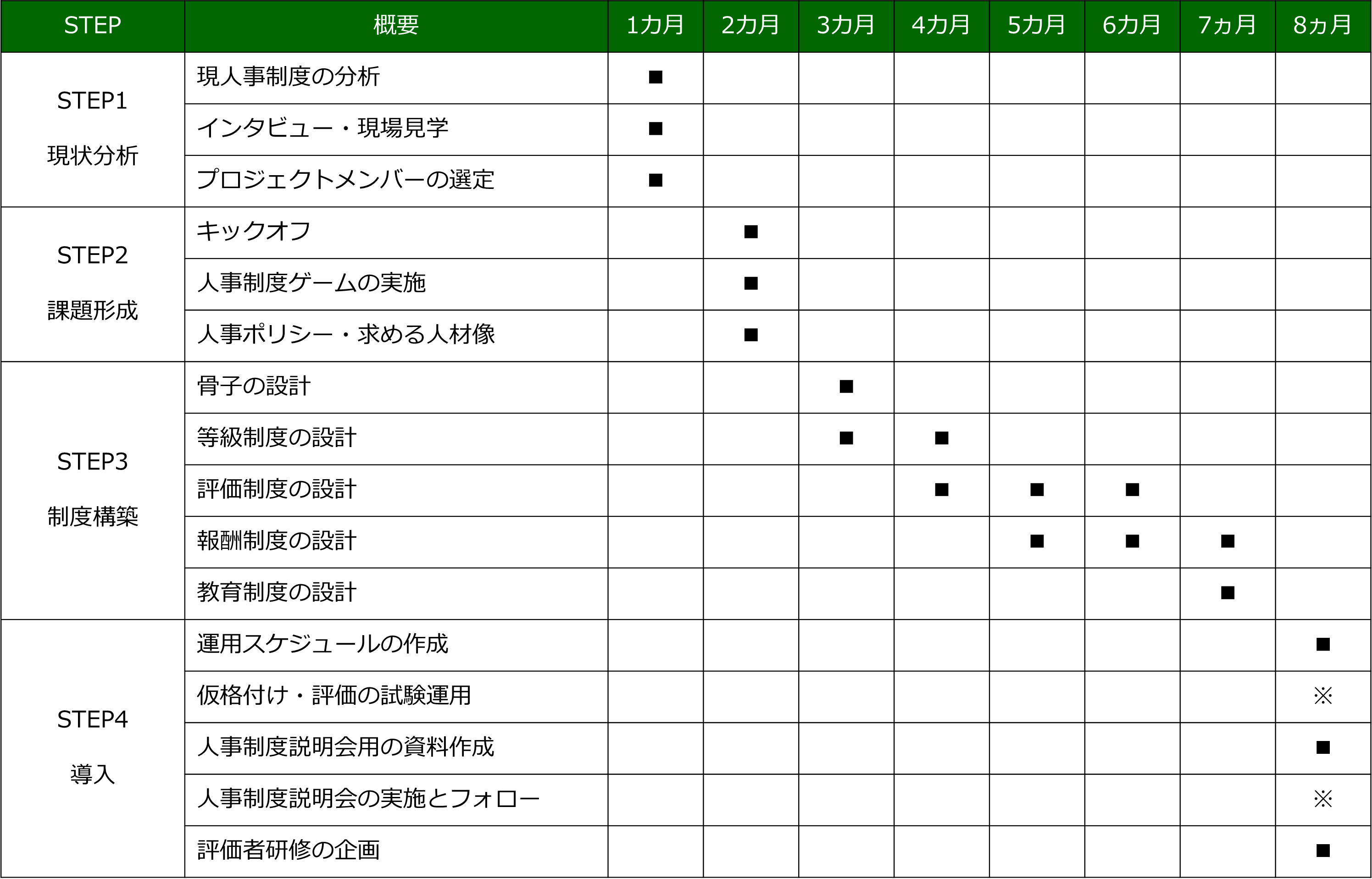 STEP1~STEP4までを、6~8ヵ月で完了します。