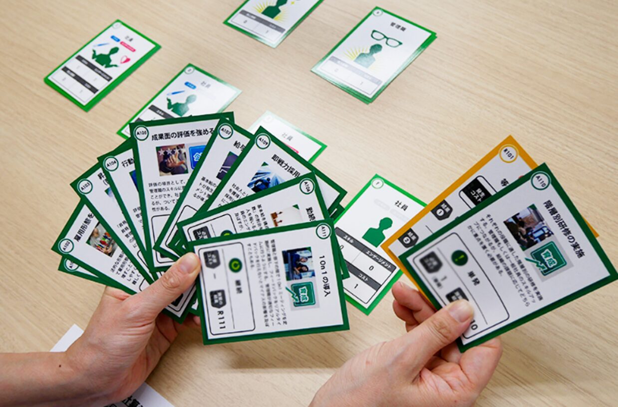 自社で開発した「人事制度ゲーム」は企業の人事担当者となり、人事制度や組織開発の取り組みを行っていくことで、企業の成長をシミュレーションし体感するゲームです。